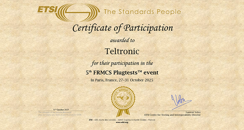 Teltronic ha participado en la quinta edición de los FRMCS Plugtests, un evento organizado por ETSI y UIC que reúne a fabricantes y operadores ferroviarios para validar la interoperabilidad de soluciones basadas en los estándares 3GPP. Con esta participación, la compañía suma nueve ediciones consecutivas en este tipo de pruebas, incluyendo las sesiones MCX Plugtests.